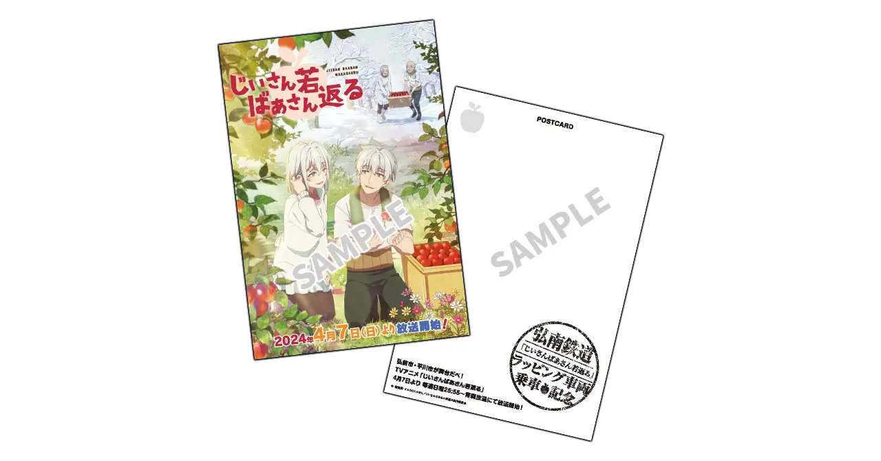期間中、ゲーマーズオンラインショップにてTVアニメ「じいさんばあさん若返る」シリーズ対象商品をご購入2,000円毎に場面写ポストカードより1種をランダムでプレゼントさせていただきます。