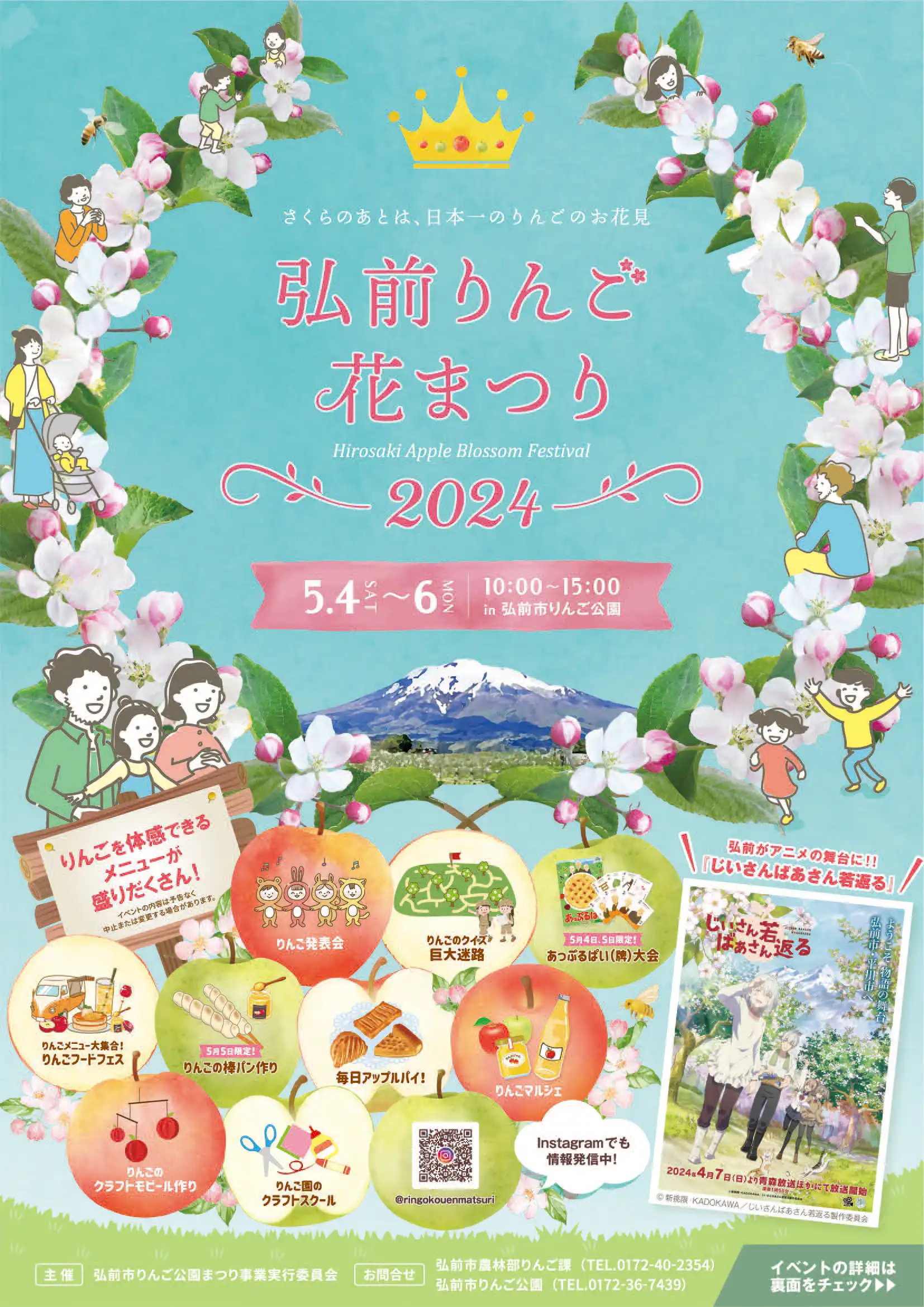 開催日時:2024年5月4日(土)~6日(月祝) 10:00~15:00 会場:弘前市りんご公園(弘前市大字清水富田字寺沢125番地) https://www.hirosaki-kanko.or.jp/edit.html?id=cat02_spring_ringohana