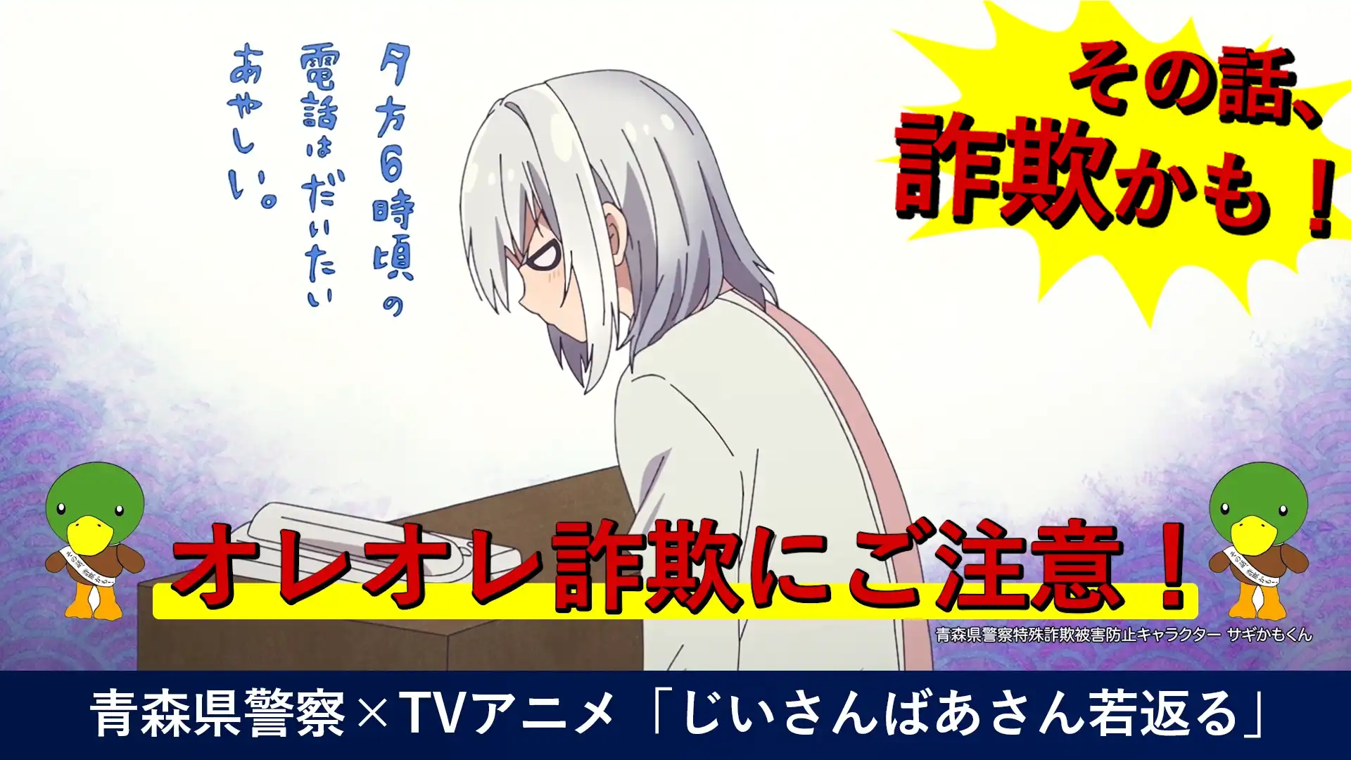 TVアニメ『じいさんばあさん若返る』が青森県警察との特別コラボを実施し、「オレオレ詐欺」の注意喚起ムービーを公開しました!