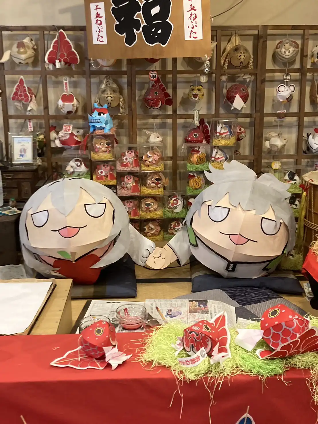 青森出身の新挑限さんの作品がアニメ化とのこと、また今回制作のお話を頂き大変喜ばしく思います。 メインキャラクター二人を球体型のねぷたにし、骨組みなどを工夫して、作中で登場する表情を再現してみました。調整や試作を重ね、色合いなどを近づけるのが困難でありましたが、非常に力作となっております。 是非今回の「じいさんばあさん若返るねぷた」を見て、多くの方に作品や青森県に興味をもってもらえればと思います。